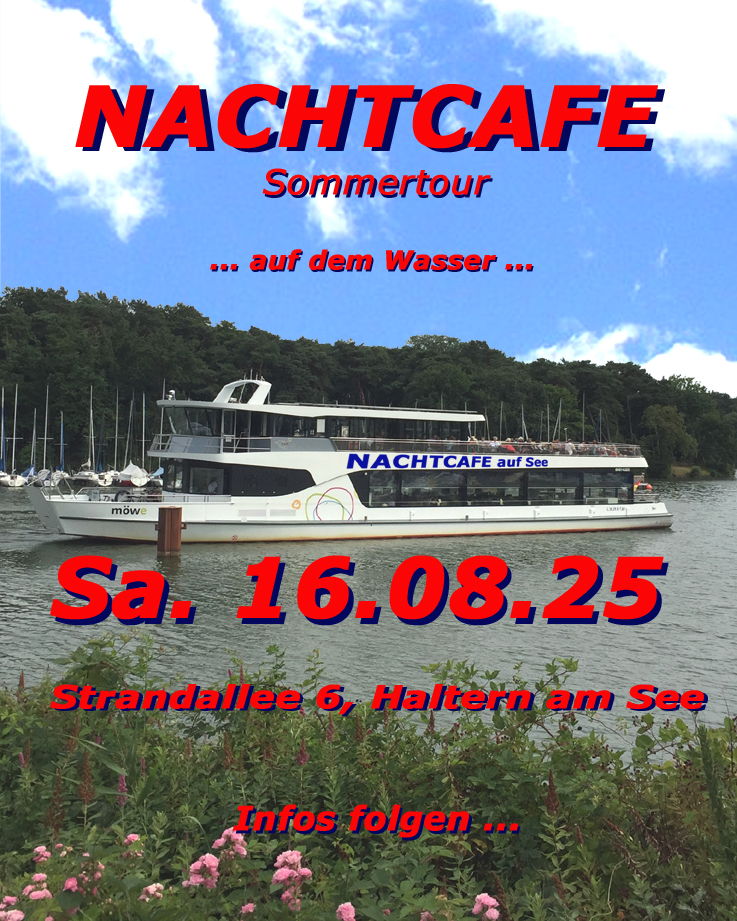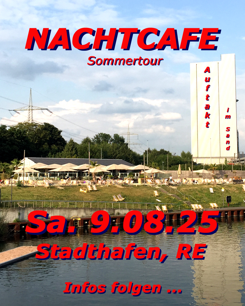 Auftakt zur Nachtcafe Sommertour Sa. 9.08.25 im Stadthafen Recklinghausen - Beachparty am Kanal - chill & dance - drink & eat - day & night -